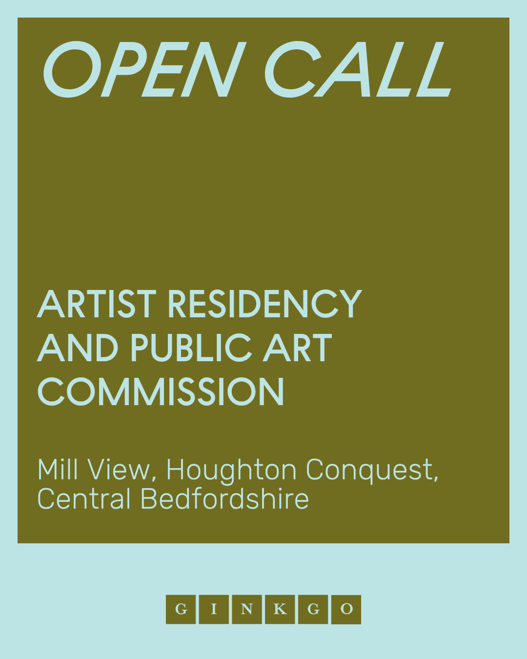 Ginkgo Projects invites expressions of interest for two distinct opportunities in Central Bedfordshire: a residency and permanent artwork at Mill View, Houghton Conquest, and a site-wide commission at Chase Farm, Arlesey.