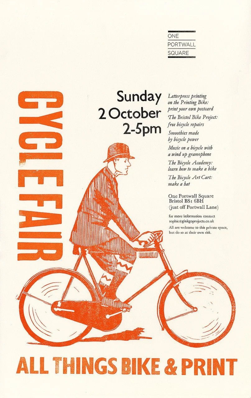 The event, 2-5pm Sunday 2nd October will focus on print, the act of printing and its heritage on the site. It will also involve a celebration of the humble bicycle which links to Nick’s research and designs for the permanent artwork. Nick has his own “printing bike” which combines the two and he proposes an event where he can talk about the project, get people involved in printing and celebrate at once: the heritage of the area, letterpress print and bicycles!